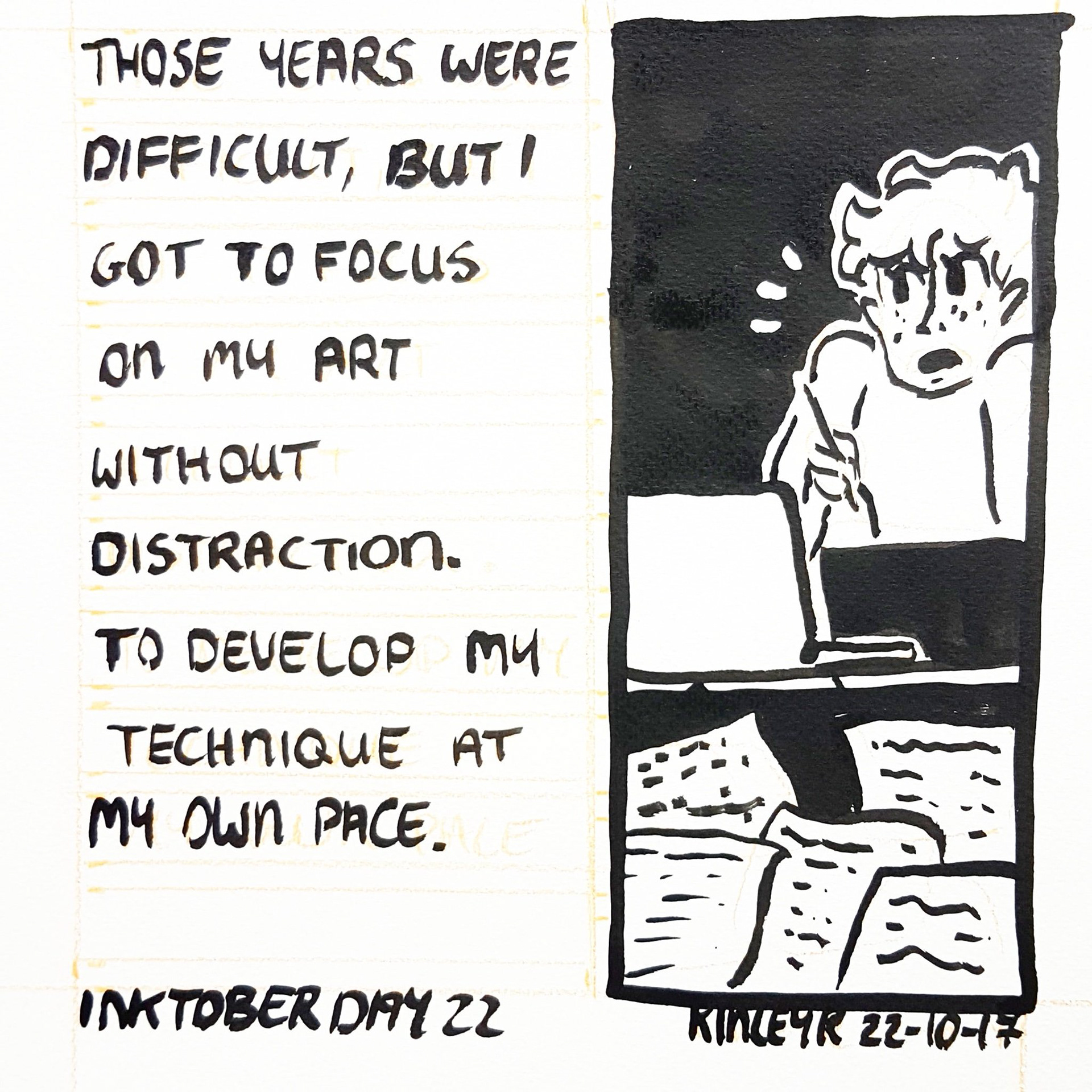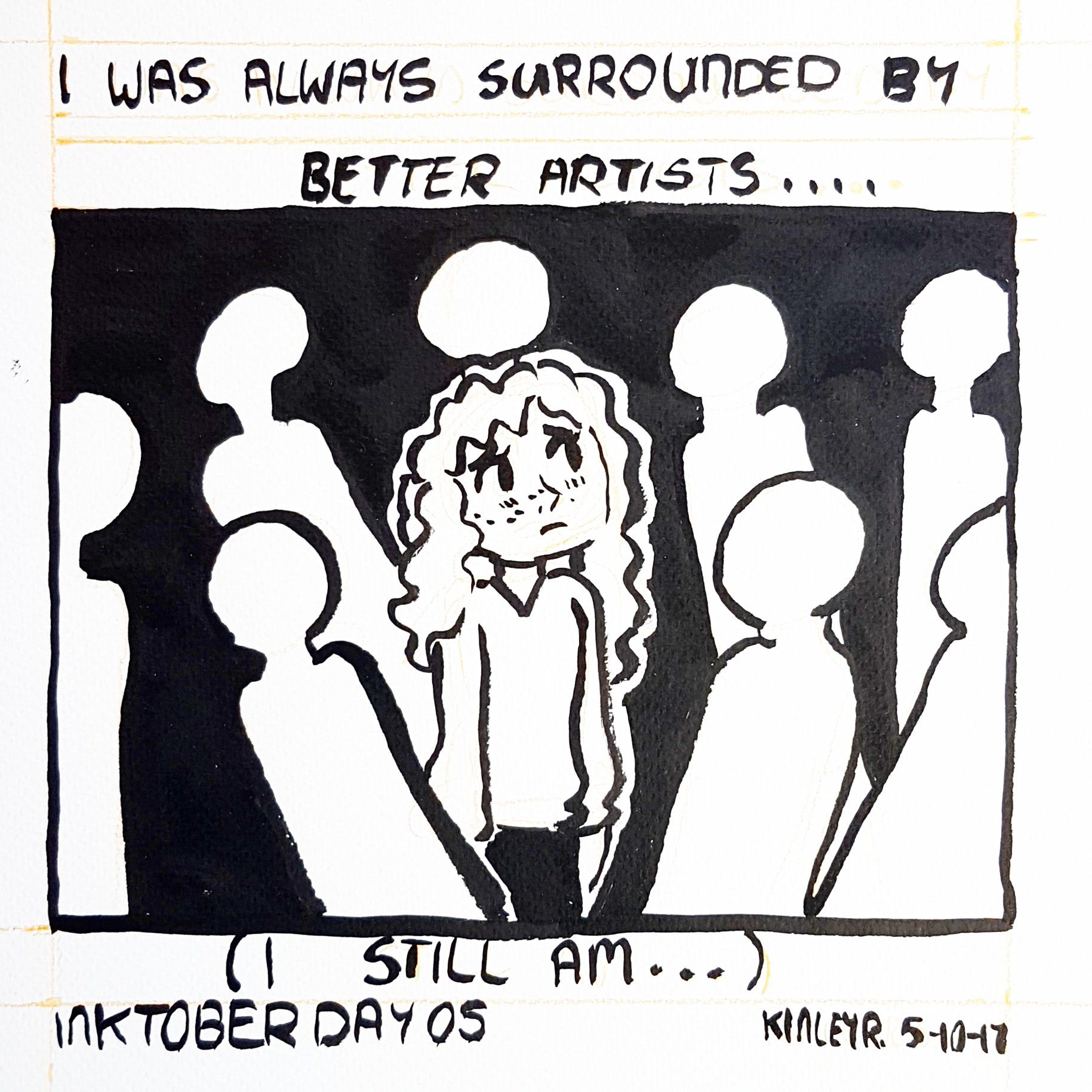 This year for Inktober I decided to create a small comic on my experiences with art, self esteem and feelings of failure.